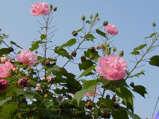 しま べにふよう いち日の色を蔵ひし紅芙蓉 |